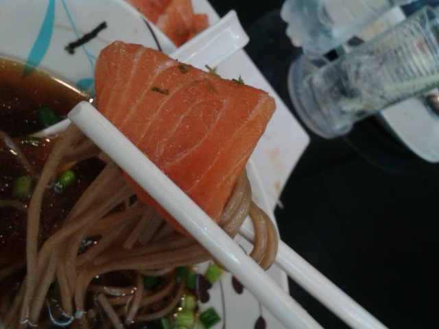 คู่นี้ผมว่า ลงตัวนะ คือเวลากินคู่กันเนี่ย จะได้รสชาติหวานๆนุ่มๆของแซลม่อน ตัดกับ โซะบะที่ออกเค็มนิสๆ กะลังฟิน