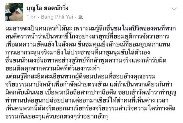 ดังนั้นผมจึงอยากฝากคุณหมอ ปลุกคนดีให้ลุกขึ้นมาต่อต้านอีกครั้ง อย่าปล่อยให้คนเถรตรงใช้กติกาเป็นกฎหมายมาจับ แล้วปล่อยให้เกิดวิกฤติคุณธรรม กระทบต่อจริยธรรมต่อไปเลยนะครับคุณหมอ