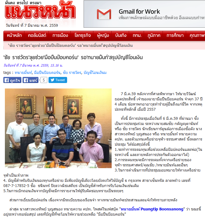 แค่แปะข่าวจาก นสพ.ก็ไม่รู้จะรอดจากเงื้อมมือ WM หรือเปล่าเลยครับ