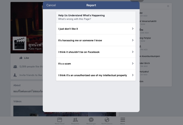 ถ้าจะ report เพจที่ละเมิดเอาหนังลงทั้งเรื่อง ต้องเลือกเหตุผลอะไรคะ