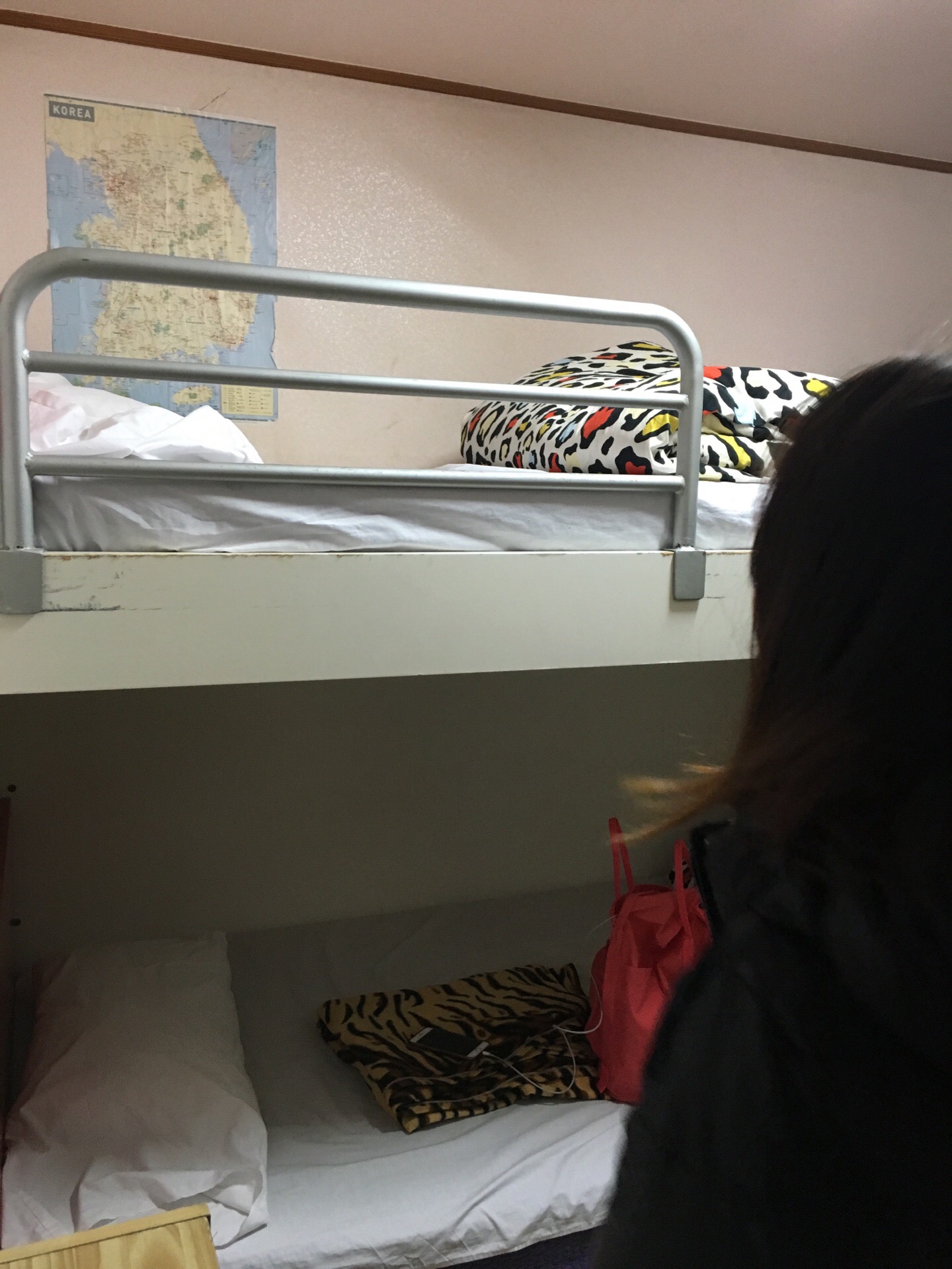 ที่นี่เป็นแบบห้องน้ำรวม แต่เรานอนห้องสองคน เป็นเตียงสองชั้น คือที่นอนก้แลดูสกปรก เหมือนเก่าๆ ผ้าห่มนี่ซักรึป่าวน๊าา คือไม่โอเคห้องนี้ได้กวาดรึยัง