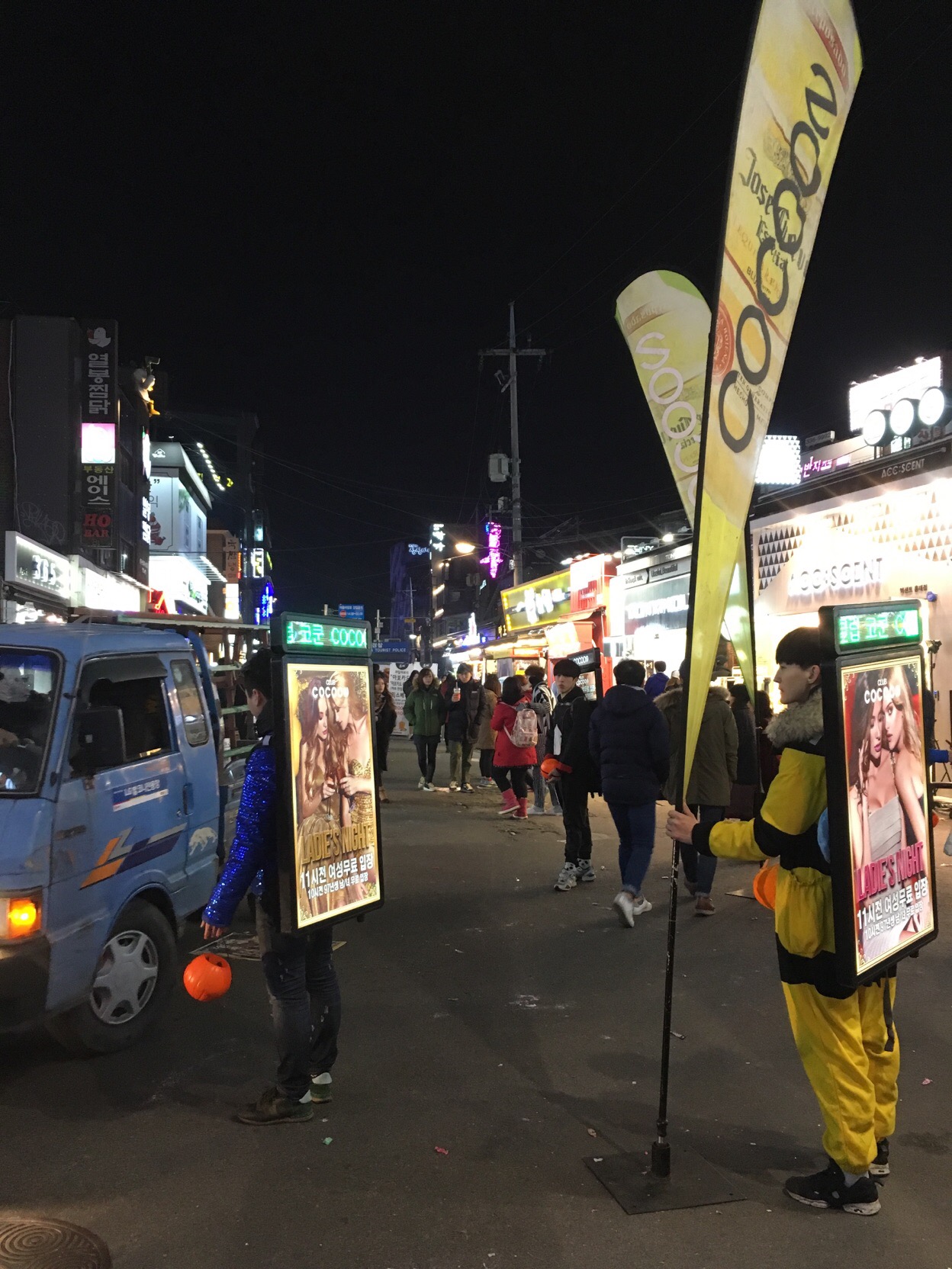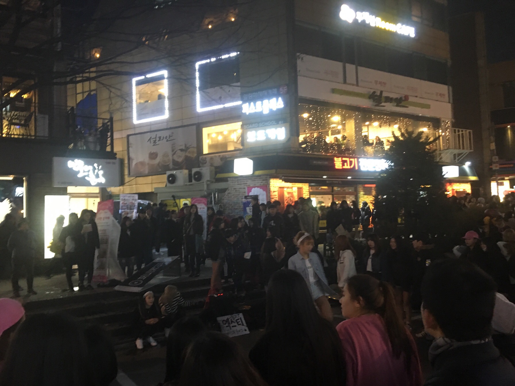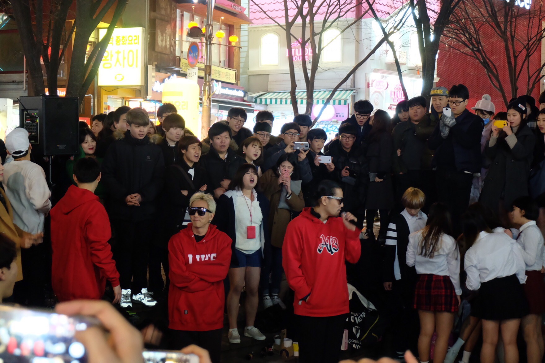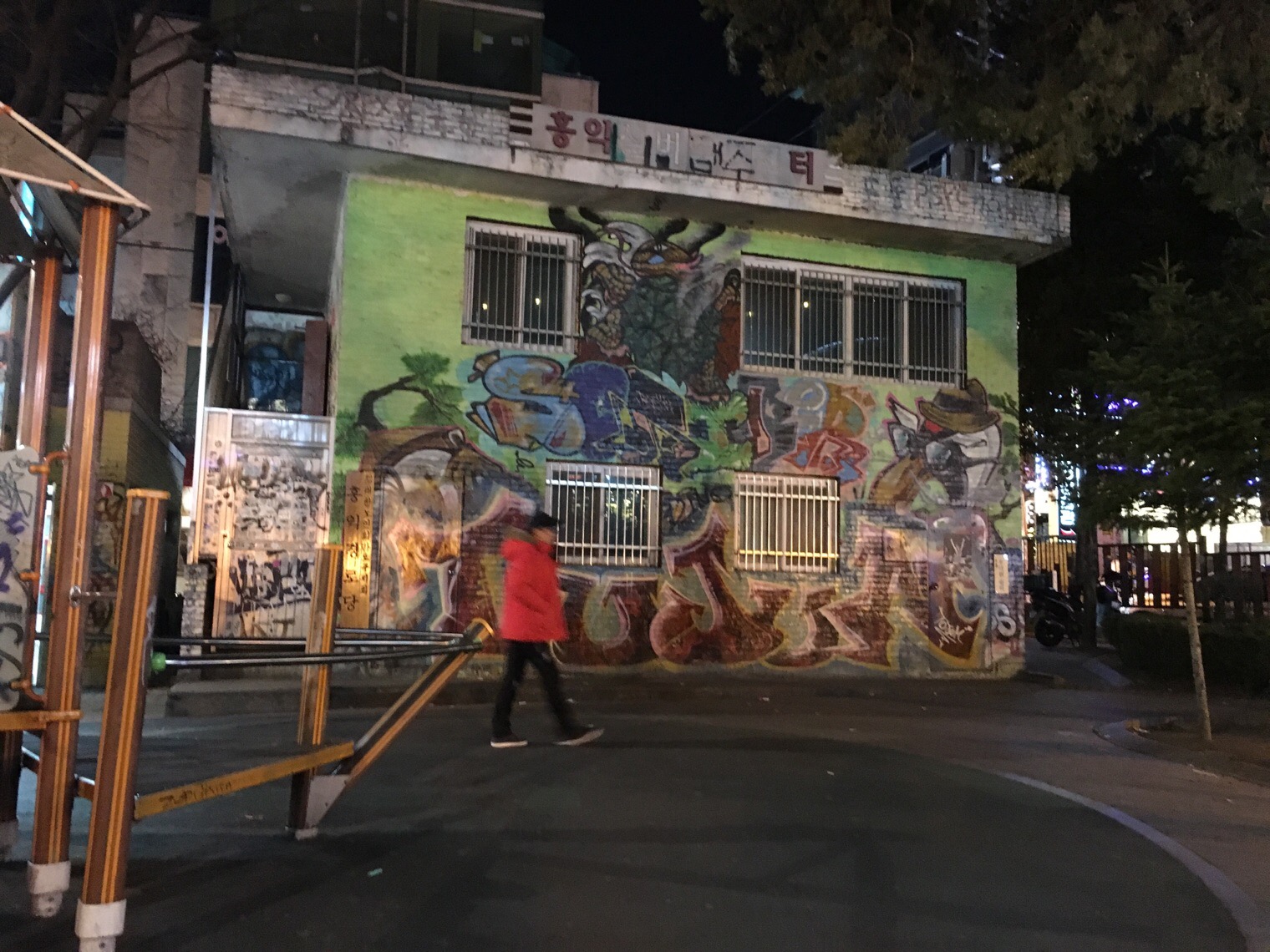 คืนนี้เราพักที่ฮงแด ถึงฮงแดประมานสองทุ่ม ก้เดินออก exit9 เพื่อหาที่พัก ใช้กูเกิลช่วยหา ฝ่าฟันความหนาวไป