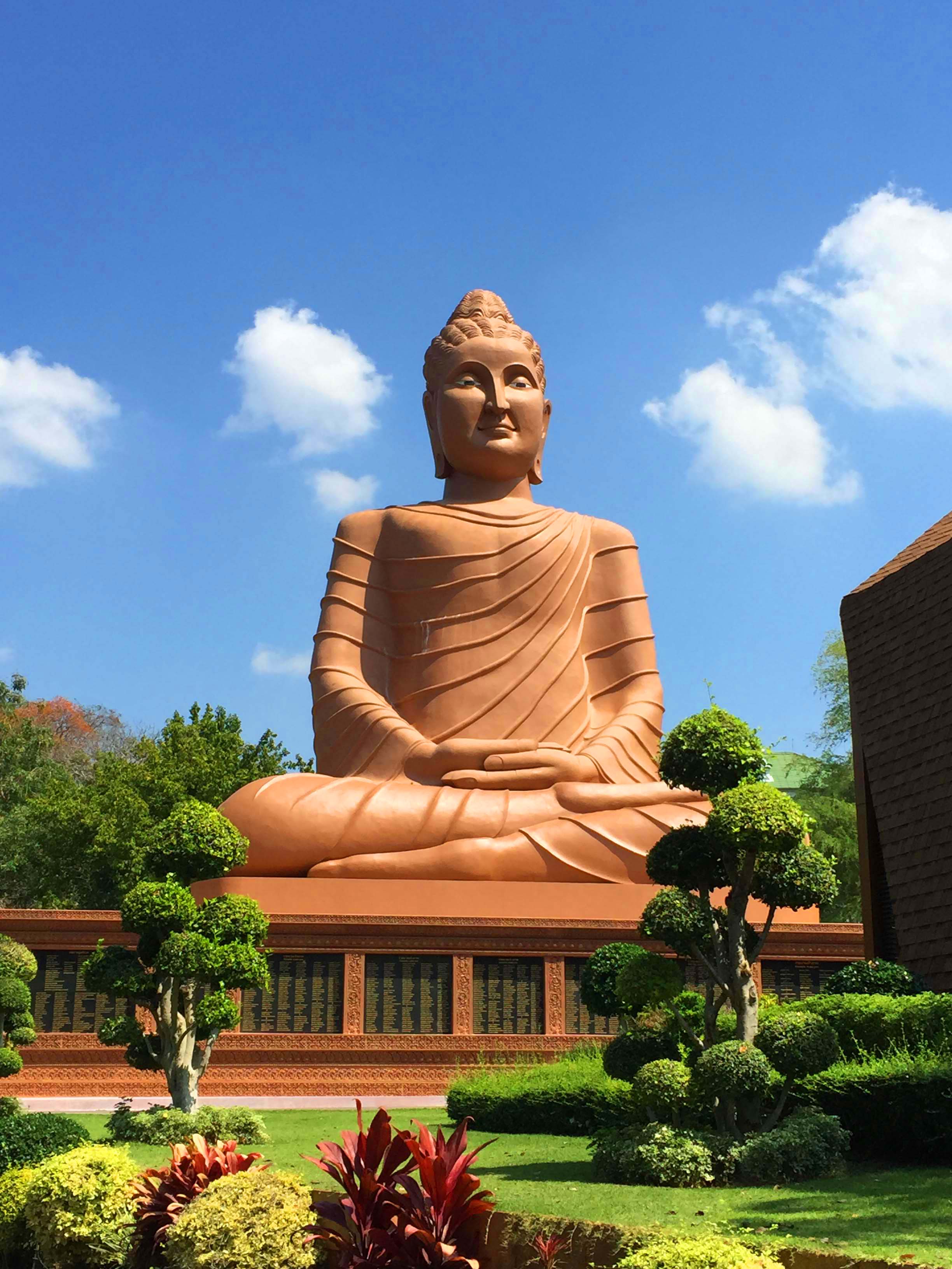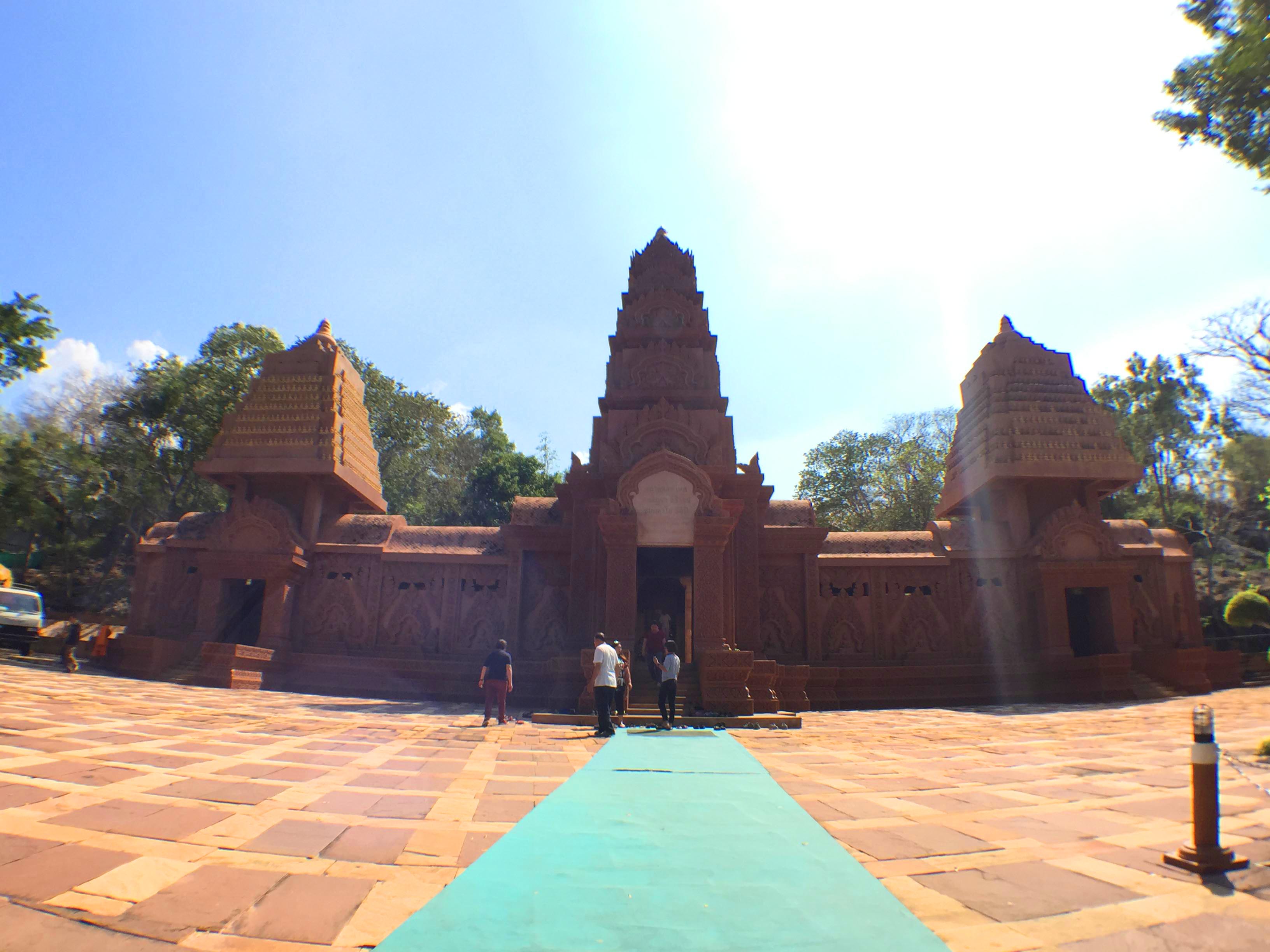 พอไปถึงนี่แบบว่า โอ้โหหหห ทางเข้าไปนี่ วัดป่าชัดๆ จะมีอะไรให้ดูมั๊ยเนี่ย พอไปถึงานจอดรถก็ต้องโอ้โหอีกครั้ง เพราะ อุโบสถหินทรายที่อยู่ข้างหน้าเรา มันสวยงามมากกก แกะสลักลวดลายสวยงาม