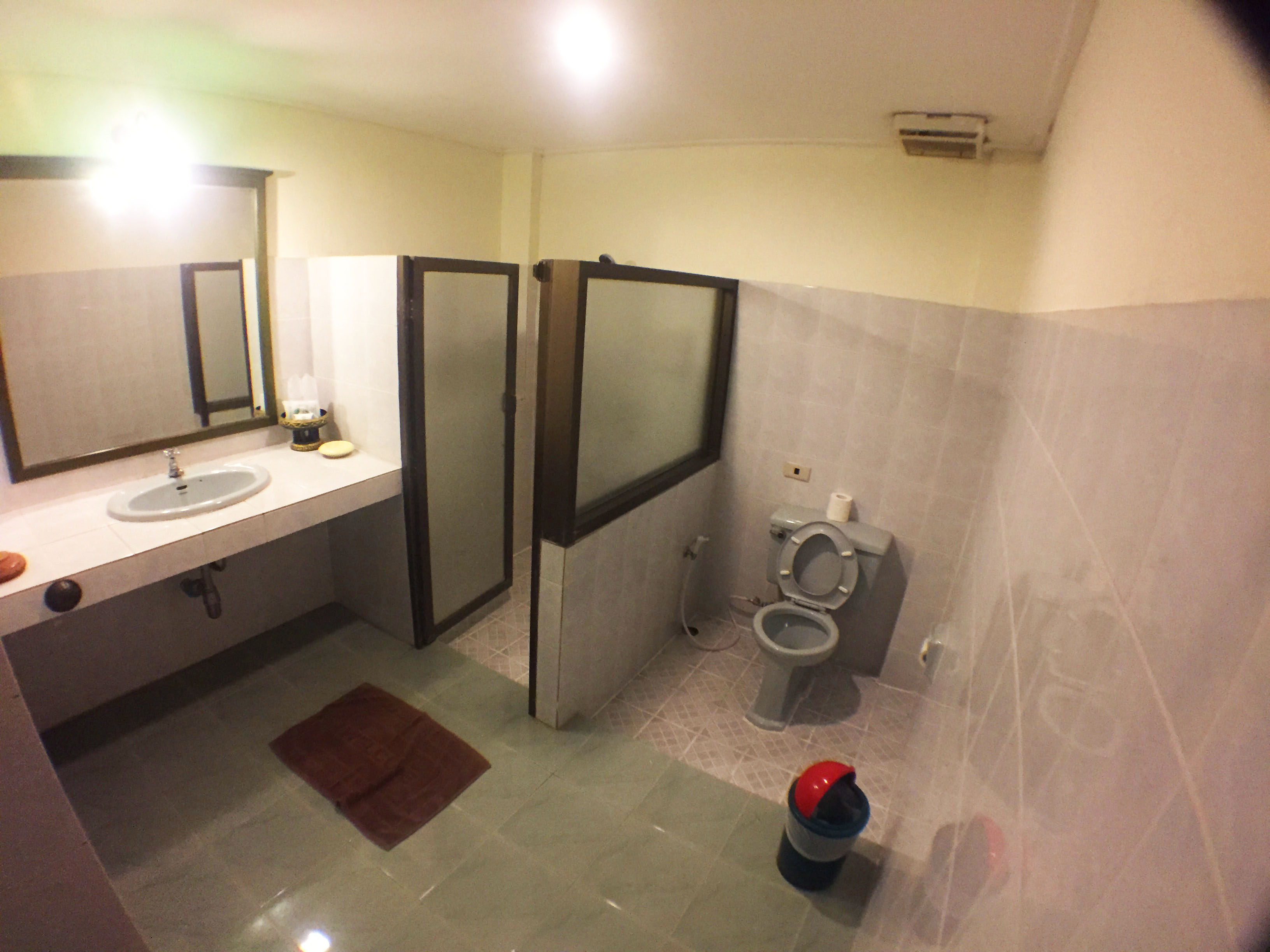 ส่วนนี่ในห้องน้ำ ไม่ได้หรูหราสมัยใหม่อะไร แต่สะอาดดี มีปัญหาแค่เรื่องกลิ่นอับนิดนึง เปิดประตูไว้แป๊บนึงก็ไม่มีกลิ่นละ