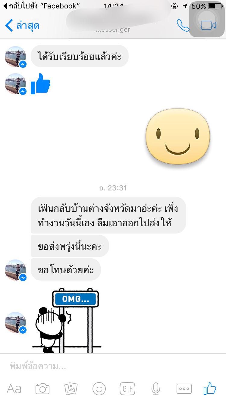 เรื่องเงียบไปวันสองวันเราก็ไม่ได้ตามทวงอะไร และไม่ได้ไปเชคที่นิติคอนโด จนวันอังคารตอนดึกนางอินบ้อกมาบอกว่ากลับบ้านที่ตจว มาแล้วลืมขอส่งให้พรุ่งนี้คือวันพุธ เราก็ไม่ได้มีปัญหาอะไร ก็ตอบไปว่าค่ะ แต่ตอนนี้เริ่มคิดมากและรอสินค้าแล้วเพราะไอ้คำว่าลืมวันก่อน