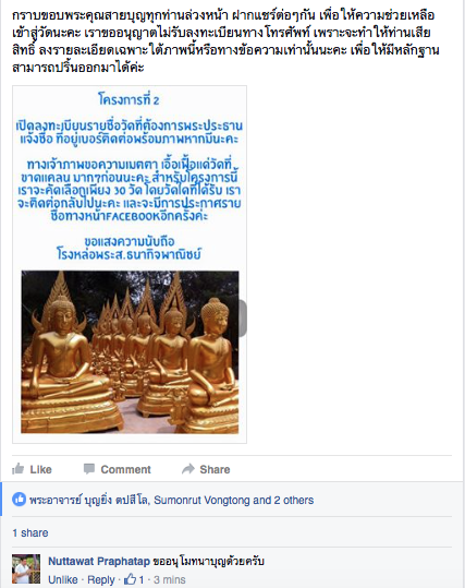 ขอความช่วยเหลือค่ะ! เพื่อนคนไหนมีวัดแถวบ้านที่ขาดแคลนไม่มีพระประธาน แจ้งกันเข้ามานะคะ