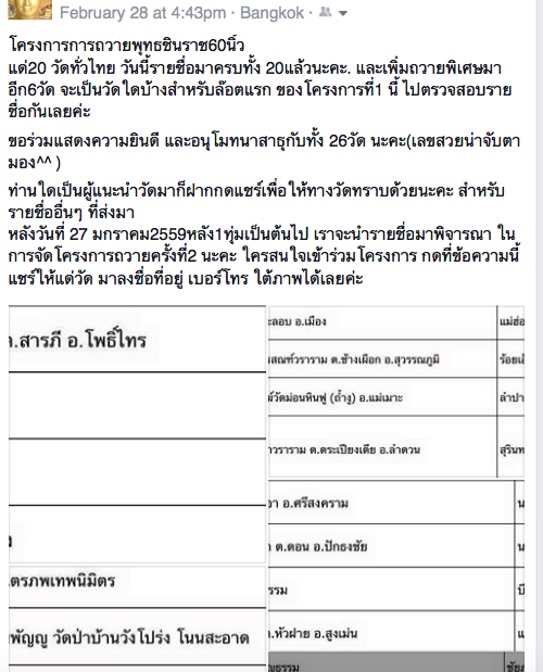 กำลังจะมีการจัดตั้งขึ้น ในช่วงเดือน พฤษภาคม ปี 2559 นี้ โดยจะถวายอีก 30วัด