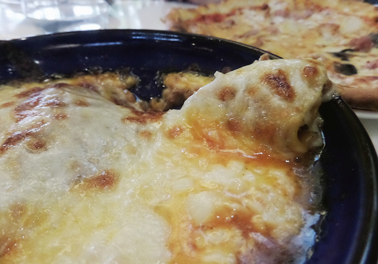เราสั่งมาสามอย่าง พิซซ่าฮาวาเอียน ลาซานญ่าเนื้อ แล้วก็สปาเกตตี้เบคอน ถ่ายรูปมารูปเดียว