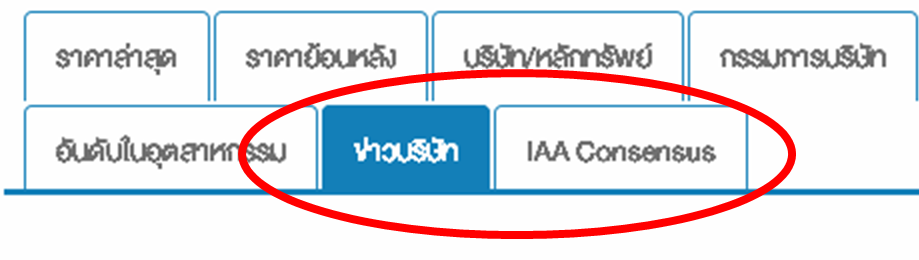 ก็เลยลองไปกดเลือกที่ Tab “บริษัทหลักทรัพย์” ตรงวงกลมสีแดงหมายเลข 1 น่ะครับ