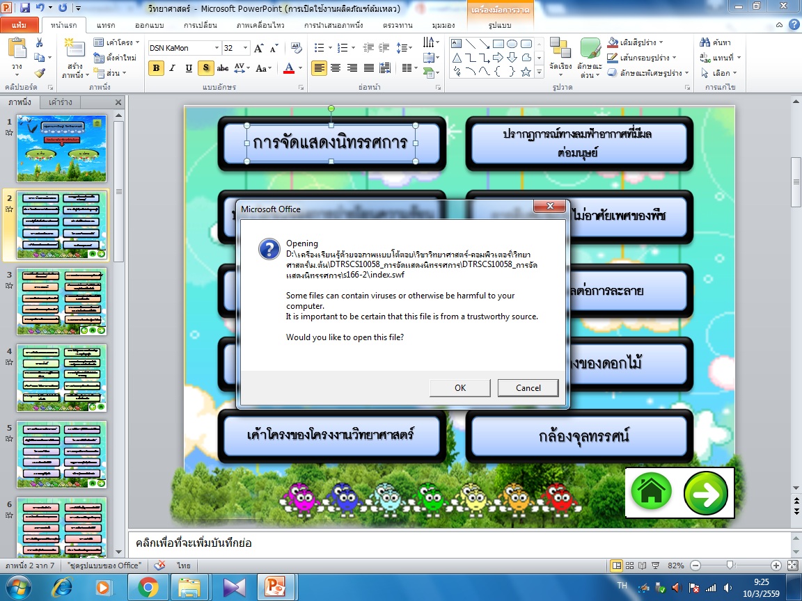 ช่วยด้วยจะแก้การแจ้งเตือนป้องกันไวรัสไม่ให้แสดงเวลาเปิดเชื่อมโยงหลายมิติยังไง Power point 2010 (มีภาพ)