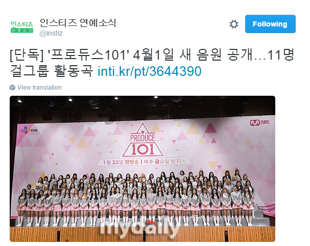 สมาชิก 11 คนที่ได้เดบิวต์กับ M-net จากรายการ Produce101 จะได้ปล่อยเพลงเดบิวต์ออกมาในวันที่ 1 เมษายน นี้