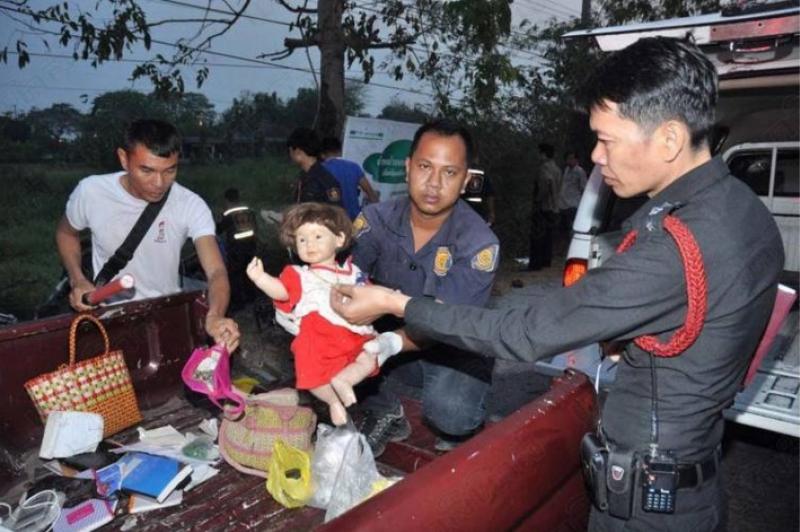 อายุ 22 ปี ภายในรถพบตุ๊กตาลูกเทพสวมสร้อยคอทองคำหนัก 1 บาทที่คอ และข้าวของกระจายเกลื่อนพื้น นอกจากนี้ยังมีนายพรเทพคงทน อายุ 16 ปี บาดเจ็บเล็กน้อย ใกล้กันมีผู้บาดเจ็บอาการสาหัส 2 รายคือ นายไตรภพ จามิกร อายุ 17 ปี และนางอุบล ปิ่นแก้ว อายุ 54 ปี โดยนางอุบล ทนพิษบาดแผลไม่ไหวเสียชีวิตในเวลาต่อมา