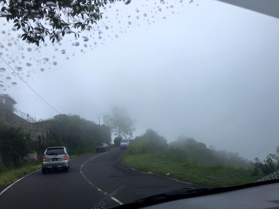 หลังจากที่ขึ้นเขาคดเคี้ยวเส้นทางขึ้นลง เลี้ยวหักศอกต่อๆกัน มา เห็นหมอกตลอดทางขึ้นไปอากาศบนภูเขาเย็นนิดๆแต่สวยมากจริงๆคะคุ้มมากๆ แถมยังได้ดูโชว์ฟรีๆอีก ข้างทางบนภูเขาเค้าก็จะปลูกผลไม้ขายคะเช่น สตอเบอร์รี่ มีตลาดผลไม้เล็กๆ