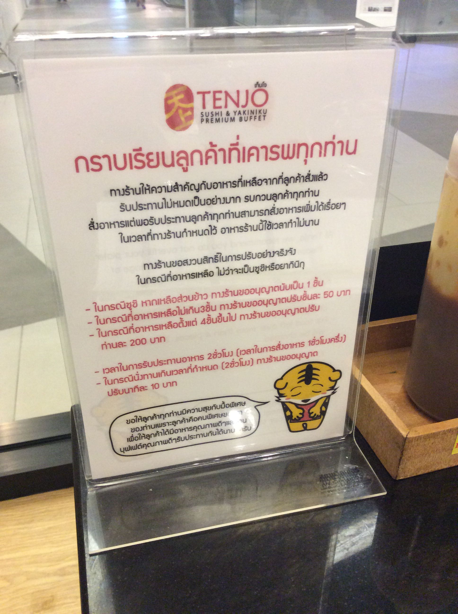 พอเข้าไปในร้าน ก็มีพนักงาน มาสอบถามว่าเคยมากินบุปเฟ่ต์ร้านเท็นโจมาก่อนหรือไม่ เราก็ตอบว่า ยังไม่เคย พนักงานบอกให้อ่านป้ายนี้ครับ