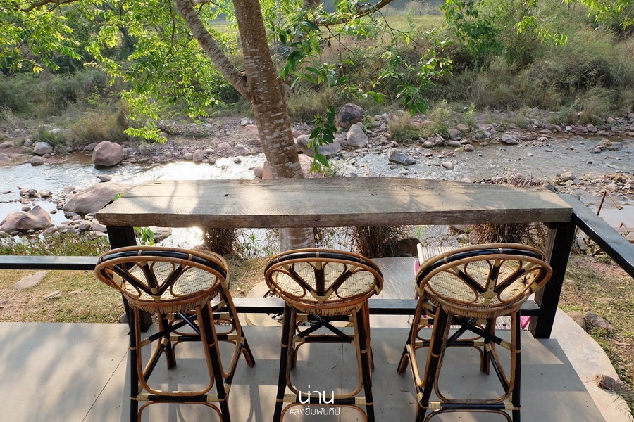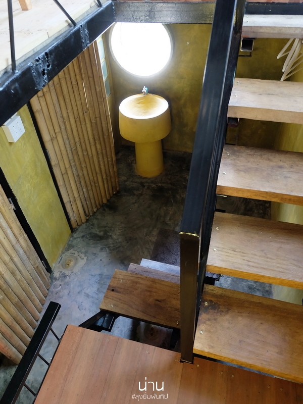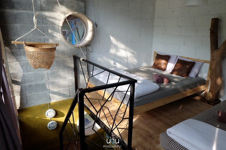 ไม่คิดว่าจะได้มาพักแบบนี้ เพราะใช้วิธีโทรมาจองหลังจากที่โรงแรมอื่นๆ เต็ม ตอนแรกจองบ้านหลังเล็กไว้ ซึ่งจะต้องใช้ห้องน้ำรวม สุดท้ายเลือกที่จะอัพเกรดเป็นบ้าน 2 ชั้น ขนาดย่อม ติดลำธารเลย ราคาคืนละ 2,500 บาท พร้อมอาหารเช้า ... ได้เวลาสำรวจที่พัก... "แปลกดีแฮะ จะเข้าบ้านต้องขึ้นบันไดมาที่ระเบียงชั้น 2 ก่อน" ตรงระเบียงมีโต๊ะ และเก้าอี้ให้นั่งชิลกันแบบส่วนตัว พอเปิดประตูเข้าไปจะเจอที่นอน ซึ่งสุมหัวกันได้เต็มที่ 4 คนเลย มีบันไดลงไปห้องน้ำซึ่งอยู่ชั้นล่าง บ้านนี้ผมขอนิยามว่า “ดิบ เรียบ และครีเอท” คือเปลือยวัสดุก่อสร้างอย่างอิฐบล็อก ท่อปูน เหล็กเส้น และไม้ไผ่ มาผสมผสานกันจนเรียกได้ว่ามีแบบเดียวในโลก “ผมชอบนะ แปลกดี” ห้องนี้ไม่มีทีวี ไม่มีแอร์ ได้สัมผัสอากาศเย็นๆ ที่เข้ามาผ่านมุ้งลวด ... “และนั่นก็มิอาจกั้นเสียงธาราแห่งลำธาร อันแว่วยินตลอดทิวา และราตรีนี้” (ถ้าเขียนต่อ เดี๋ยวจะกลายเป็นละครจักรๆ วงศ์ๆ ไป 555) สรุปมันชิลมากกกก สุดยอดมากกก ได้ฟังเสียงน้ำไหลทั้งวันทั้งคืน