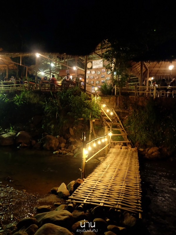 ตกค่ำได้เวลาหาอาหาร (ไม่ได้พากษ์สารคดีสัตว์โลกน่ารักอยู่นะครับ 555) ผมไปที่ร้าน “หัวสะพานบ่อเกลือ” ซึ่งอยู่ไม่ไกล บรรยากาศดีครับเพราะติดลำธาร ช่วงรออาหาร ผมเดินไปที่ลำน้ำ รู้สึกมีสิ่งเคลื่อนไหวอยู่ด้านล่างเลยก็เลยถ่ายรูปเปิดแฟลชว๊าบเข้าไป “โห ปลาเยอะมาก น่าจะเป็นปลาปีกแดงที่กำลังว่ายทวนกระแสน้ำมาผสมพันธุ์และวางไข่”