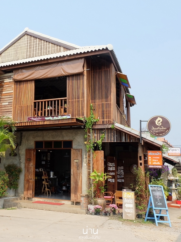 บ่าย 3 เข้าไปแล้ว ได้เวลากลับไปเมืองน่านแล้ว เพราะต้องเดินทางกว่า 100 กม. ร่วม 2 ชม. เส้นทางมีขึ้นเขาลงเขา “ทำไมไม่ค่อยเจอรถสวนหล่ะ มาทางที่ไม่ค่อยมีใครมาหรือเปล่าเนี่ย” ขับไปเรื่อยๆ อย่างระมัดระวัง ในที่สุดก็กลับมาถึงเมืองน่านได้อย่างปลอดภัย เข้าที่พักที่จองไว้ชื่อ “เฮือนช้างเผือก” อยู่โซนใกล้สนามบิน คนละโซนกับย่านเมืองเก่า แต่การขับรถเข้าไปก็ไม่ยากเย็น เช็คอินบ้านไม้เสร็จก็อาบน้ำ เตรียมไปเที่ยวงานเทศกาลศิลปะน่าน (Nan Arts Festival)