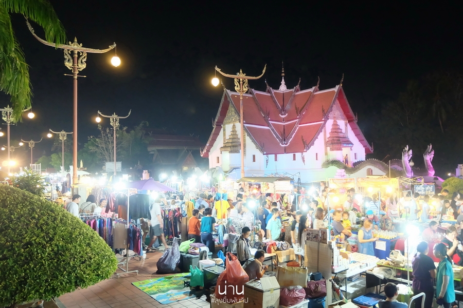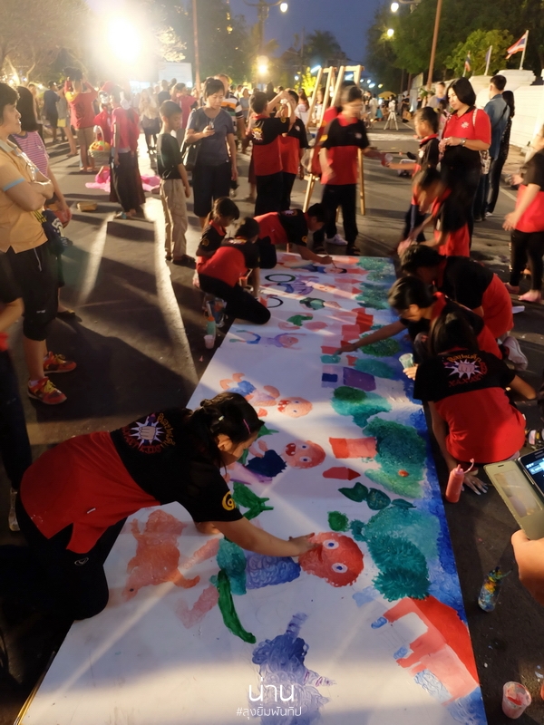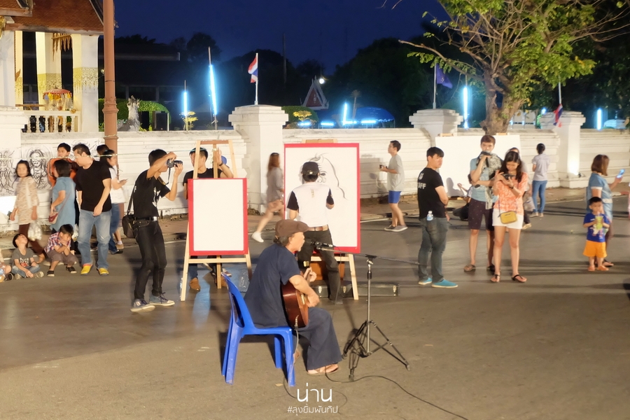 โชคดีมากๆ ที่มาช่วงเทศกาลศิลปะเมืองน่านพอดี สถานที่จัดแสดงจะอยู่บริเวณหน้าพิพิธภัณฑ์สถานแห่งชาติ น่าน มีทั้งการแสดงบนเวทีกลางแจ้งอย่างหุ่นกระบอก ดนตรี และการละคร มีสตรีทอาร์ต ตามถนนคนเดิน รอบๆ นี้ยังมีการจำหน่ายสินค้าและอาหารด้วย