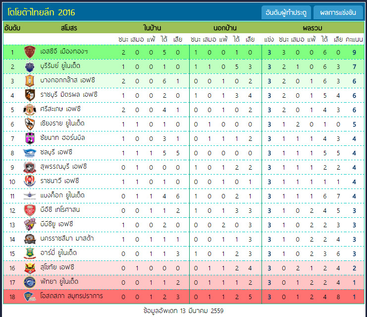 การจะบอกว่าปีที่แล้วเมืองทองเปิดหัวร้อนแรงคงไม่ใช่ครับ บุรีรัมย์ก็เช่นกัน แต่พอผ่านไป 10 นัดเราอาจคุยกันได้ว่าใครเอ๋ยจะเป็นว่าที่แชมป์ ซึ่งตอนนี้ยังคุยกันไม่ได้นะครับ ใจเย็นๆหน่อยเนอะ รอสักพักนะครับแฟนบอลทั้งหลาย