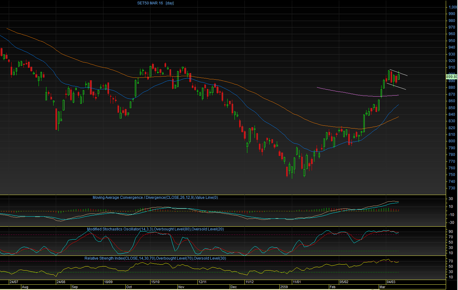 ระดับ 910 จุดได้ จะเป็นการยืนยันรูปแบบ "Bullish Flag" และจะทำให้เกิด Golden Cross หนุนส่ง อีกครั้ง