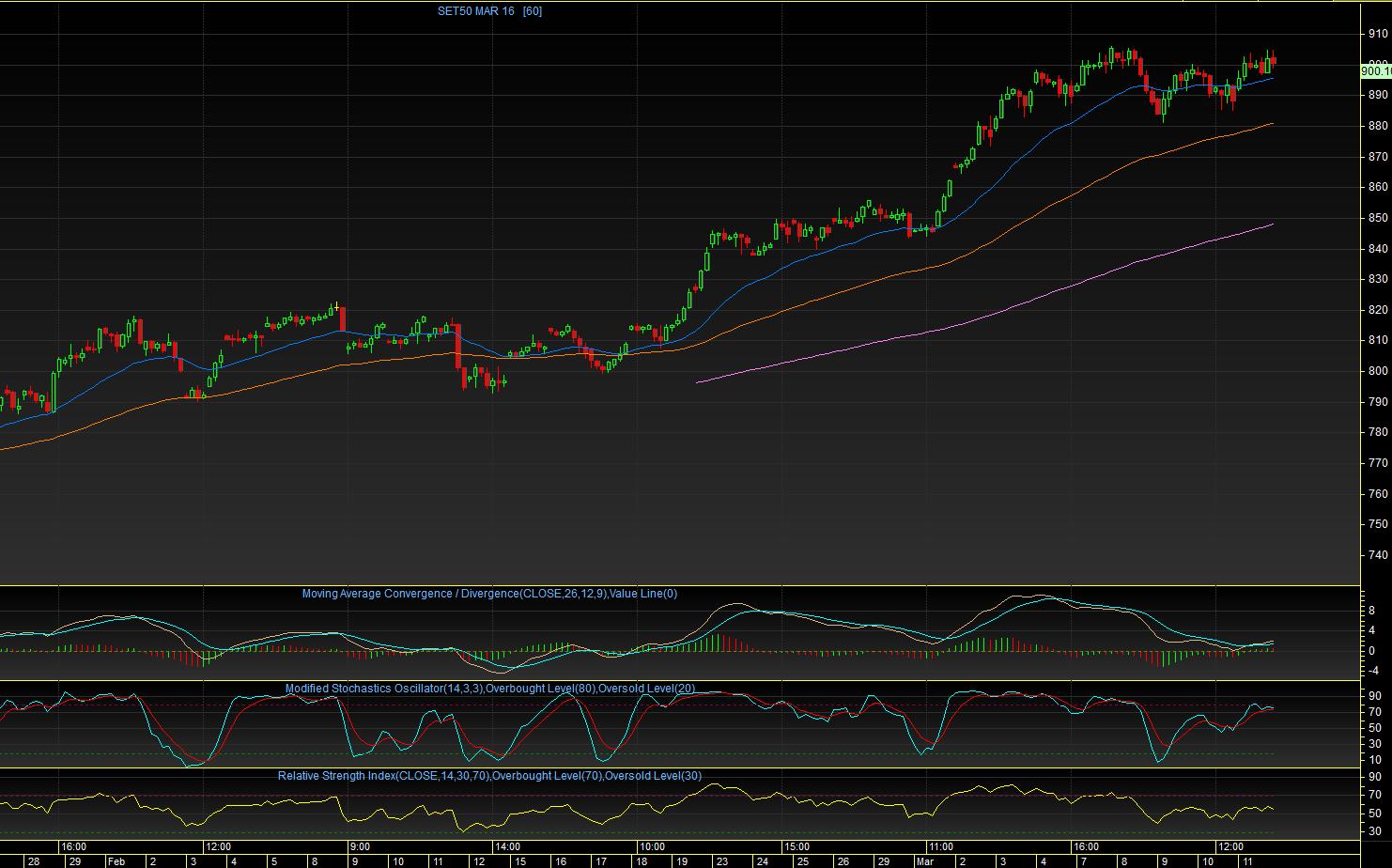 910 จุดได้ จะเป็นการยืนยันรูปแบบ "Bullish Flag" และจะทำให้เกิด Golden Cross หนุนส่ง อีกครั้ง