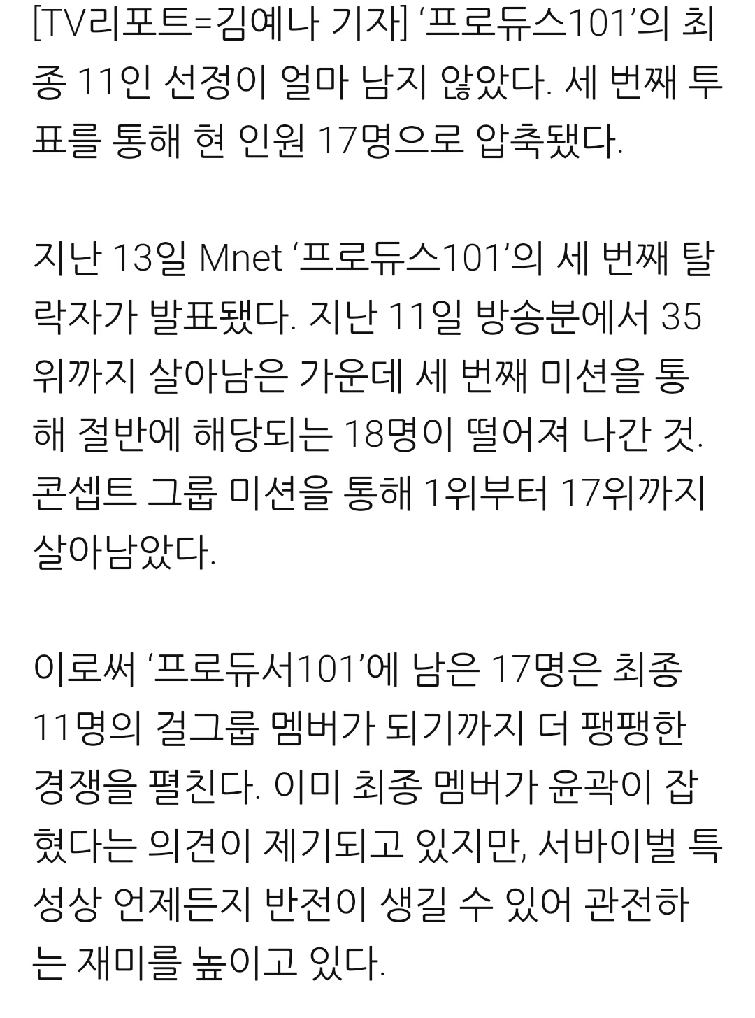 [PRODUCE101] หลังจากการคัดออกครั้งที่ 3 จะมีเทรนนี่เหลือ 17 คน