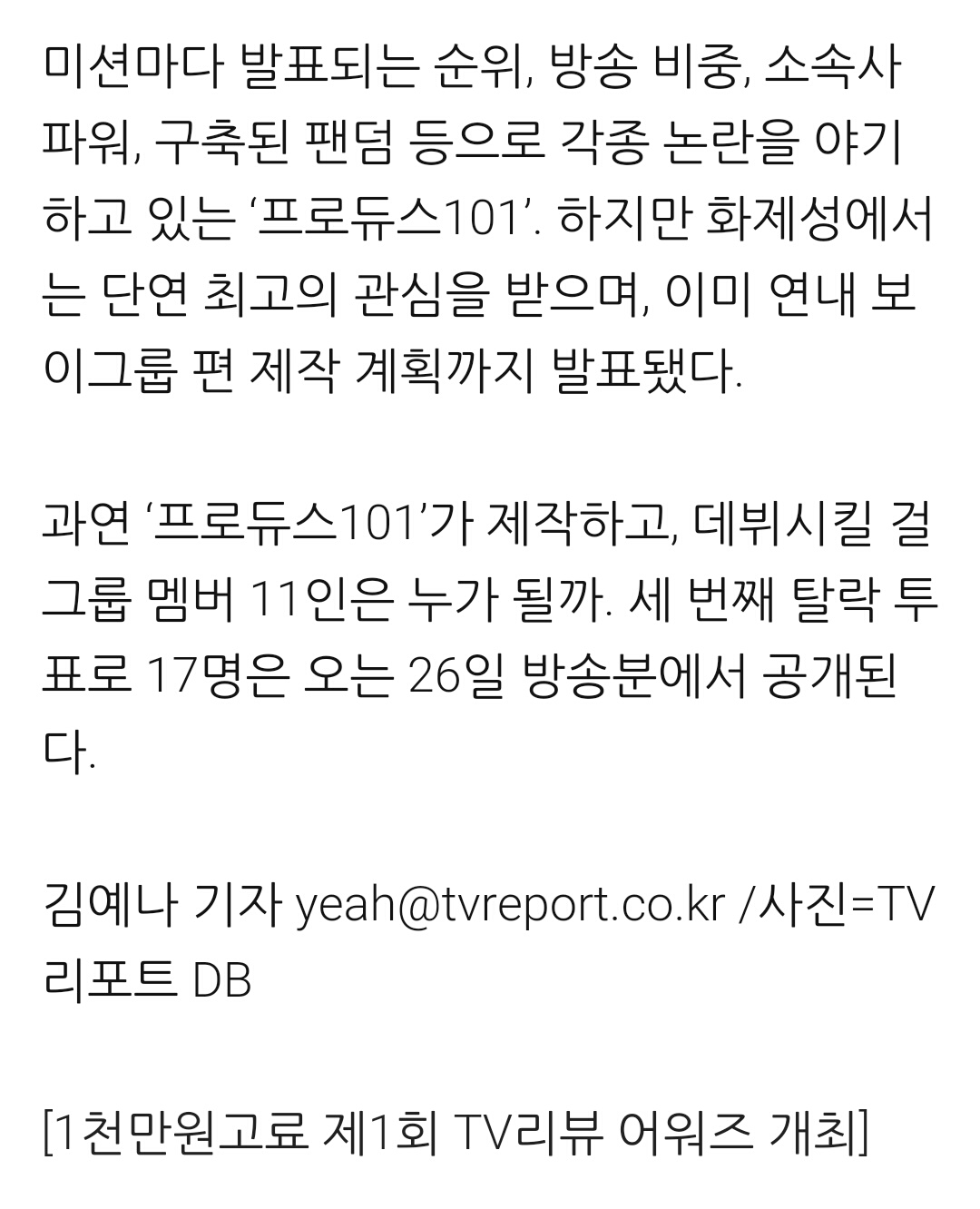 รายการ'Produce101'ได้ส่งคำเชิญไปยังตัวแทนของเทรนนี่ทั้ง 22 คน เพื่อมาร่วมเป็นสักขีพยานในรอบสุดท้าย. ตามที่ตัวแทนรายการกล่าว ทางเราได้ติดต่อไปยังตัวแทนค่ายต่างๆและขอให้พวกเขามาร่วมเป็นส่วนหนึ่งระหว่าง