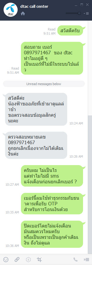 เบอร์แบบเติมเงิน Dtac ปิดเบอร์โดยไม่แจ้งเตือน