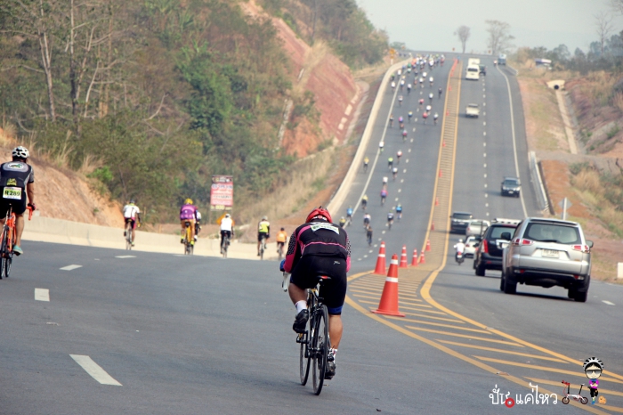 ไปงานนี้ไม่ได้อ่านรายละเอียดอะไรเลย เห็นว่าสมัครฟรีได้เสื้อก็เลยไป แต่พอไปเห็นเส้นทางแล้ว เย้ยยยย เนินเขาเยอะเลยนี่หว่าๆๆ ไปกลับ 40 กม. ปิดถนนฝั่งซ้ายตลอด ไปกลับตัวที่ กม.20 อุทยานทุ่งแสลงหลวง ถนนสวยงาม เนินสวยงาม อากาศไม่ร้อนมาก ประทับใจครับ