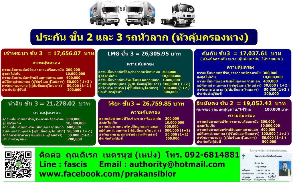 สนใจติดต่อได้เลยนะครับ มีทุกบริษัทให้เลือกทั้ง วิริยะ คุ้มภัย เจ้าพระยา MSIG กรุงเทพประกันภัย นำสิน สินมั่นคง แอ๊กซ่า อาคเนย์ LMG เป็นต้น
