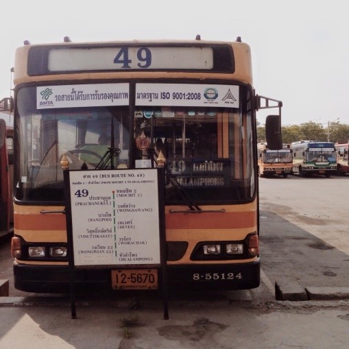 วันที่ 7 เมษา เวลา 9 โมง กว่า ถึงหมอชิตแล้ววว เย้ วิ่งลงรถ 555 และด้วยความที่บ้านนอกเข้ากรุง แต่จะไม่ยอมเสียค่าแท็กซี่ เราเดินตามหาทางไปขึ้น รถเมล์ เดินไปก็ถามทางไปเรื่อยๆ ทำไม หมอชิตมันมีซอยเยอะจัง ได้แต่คิดแล้วก็สงสัย เย้ นั่นไงรถเมล์ แต่เดี๋ยวก่อน ทำไมมันเยอะแบบนี้ ! เดินอ่านทีละคัน สรุป ได้คันนี้ค่ะ ค่ารถเมล์ ราคา..19 บาท หมอชิต-หัวลำโพง