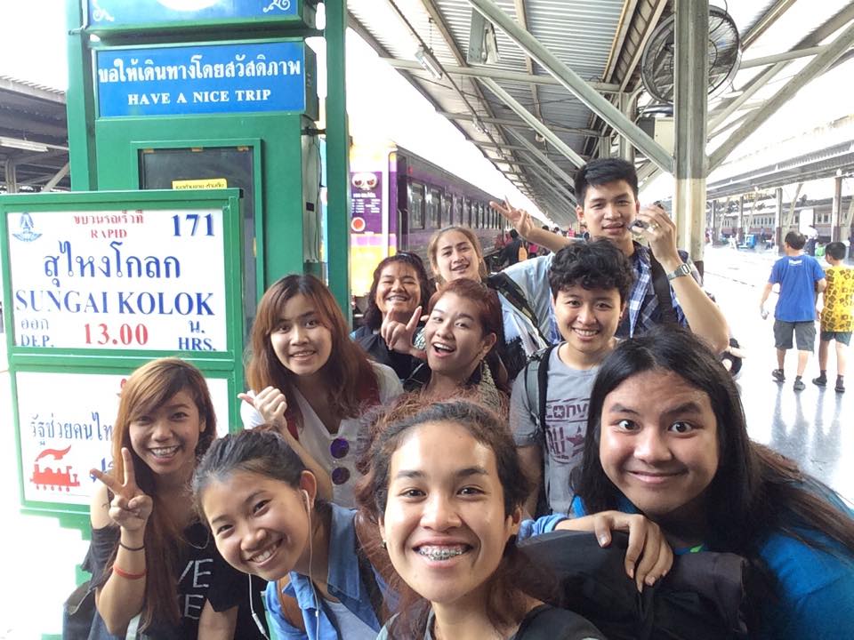 ได้เวลา รถไฟออก เพื่อนอีกคนที่ไม่ได้ไปด้วย มาส่ง (คนมาส่งเยอะจัง 55) ลืมบอกว่ามีรถไฟฟรี แต่เราก็เพิ่งรู้ตอนซื้อตั๋วเสร็จ 55 ไม่เป็นไร มีที่นั่งเป็นของตัวเองดี