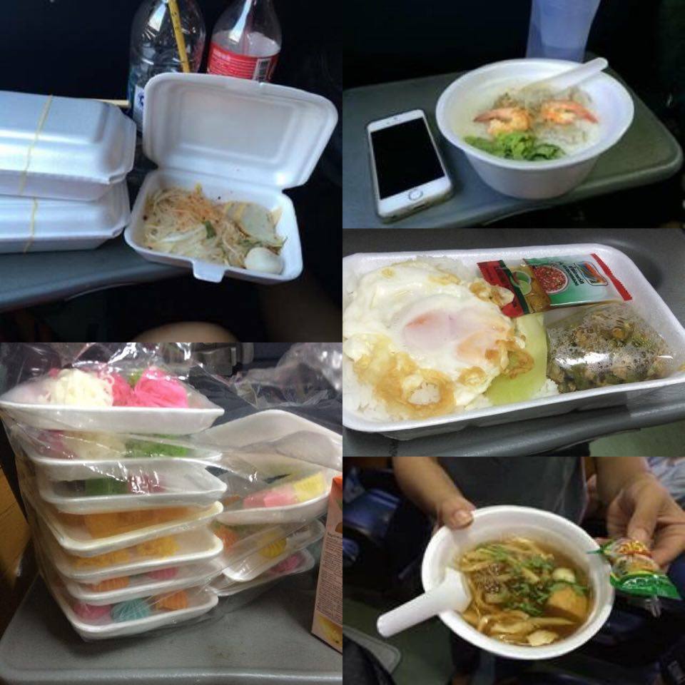 ระหว่างการเดินทาง มีอาหารแต่ล่ะจังหวัดแวะเวียนขึ้นมาขายประปราย เป็นของดีประจำจังหวัดที่ผ่านบ้าง อาหารที่ทานได้ง่ายๆบ้าง หรือแม้กระทั่ง อาหารที่สัมปทานขายบนรถไฟ