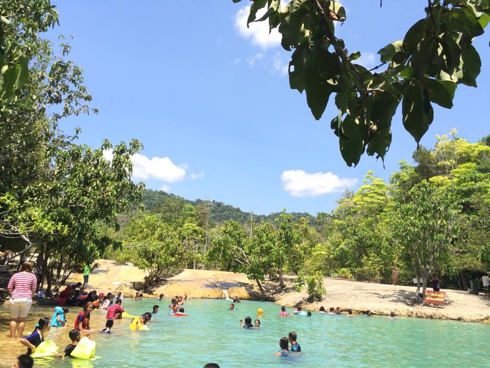 ถึงแล้ววว สระมรกต คนเยอะมากก น้ำเขียวมาก ฟินนนนน ส่วนใหญ่ คนที่มาที่สระมรกตจะเป็นคนไทยค่ะ ต่างชาติน้อยมาก อาจเพราะมันไกลจากชายหาดเลยทำให้เดินทางมาไม่สะดวกมั้ง อันนี้เราก็เดาไป