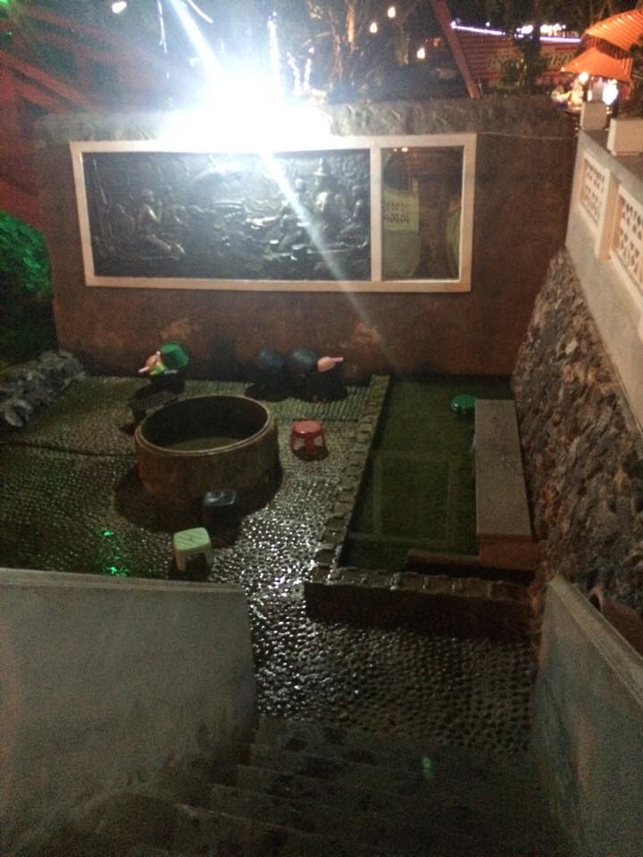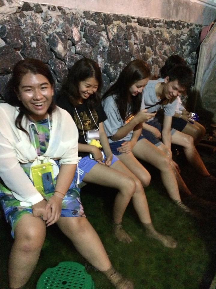 น้ำร้อนมาก ประมาณ 60-70 องศาได้ เอาเท้าลงครั้งแรกนี่ ร้องจ๊ากกันทุกคน ซักพัก เริ่ม ชิน และฟินมาก สังเกตว่าที่พื้นมีหินกลมๆ อยากจะบอกว่า หินกลมๆ นี่ใช้นวดเท้าค่ะ เพิ่มปริมาณความสบายได้อีกเท่าตัว เดินทางมาทั้งวันได้มาผ่อนคลายแบบนี้ ดีสุดๆไปเลย