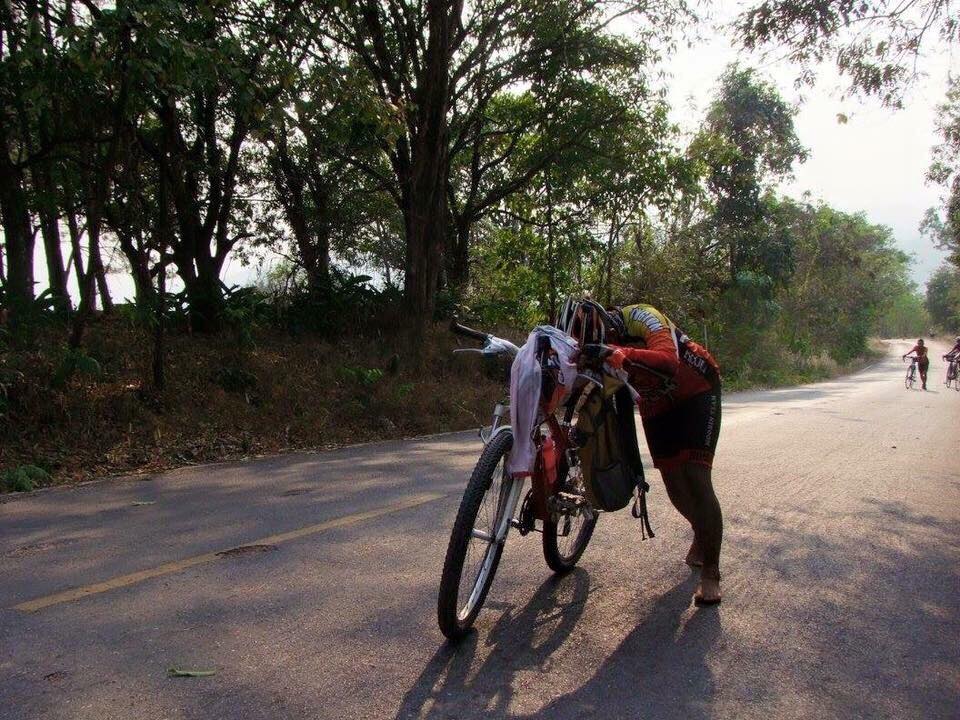 ปั่นไปประมาณ 10 กว่ากม. มีน้องในกลุ่มยางรั่ว เราเลยหยุดรอเพื่อนปะยางประมาณ 10 นาที