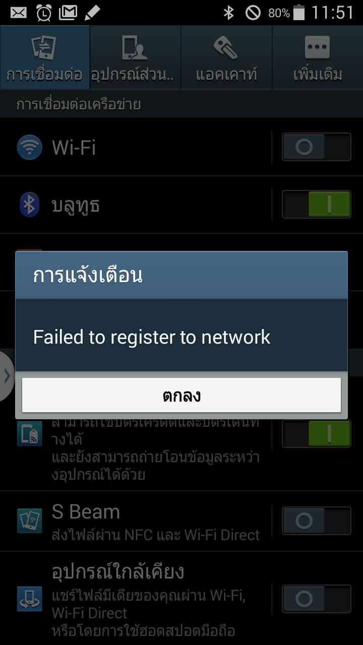 SAMSUNG NOTE 2 ขึ้น "ไม่ได้ลงทะเบียนเครือข่าย"