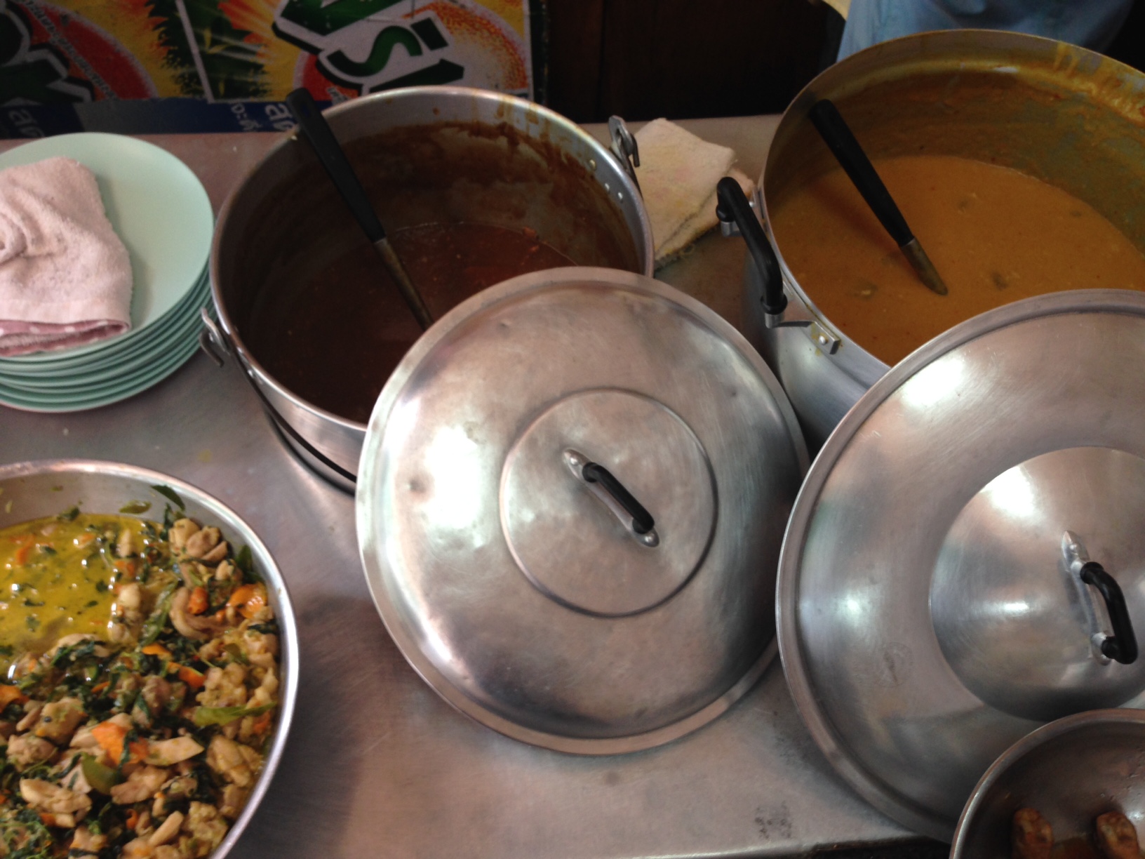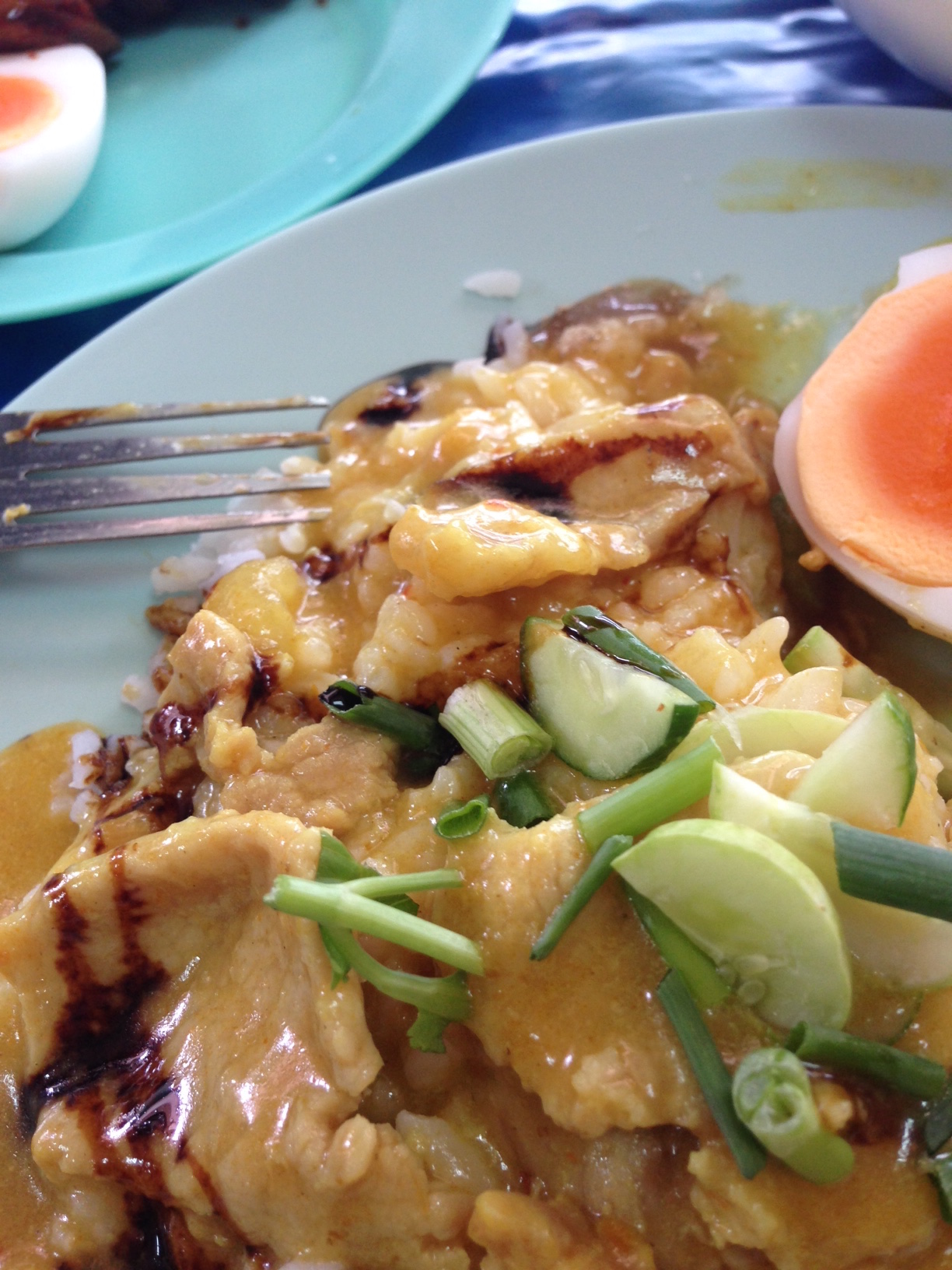 ตัวร้านไม่ได้ตกแต่งอะไร แต่ให้บรรยากาศความเก่าแก่ได้เป็นอย่างดี มีแกงอยู่ 2 หม้อ เป็นสตูว์ลิ้นหมูกับแกงกะหรี่หมู และก็มีผัดกะเพรา กับไข่พะโล้และน่องไก่ตุ๋นด้วย แต่ไม่เคยทาน