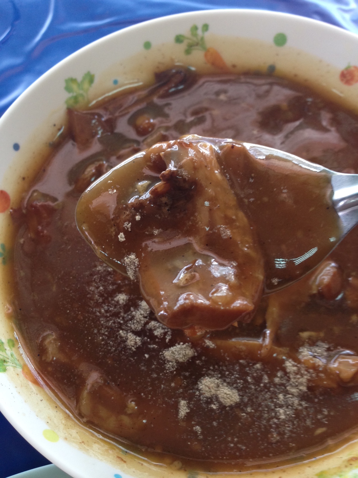อิ่มนี้ไม่แพงเลยครับ ประมาณ 100 เดียว ส่วนเรื่องรสชาติบอกเลยอร่อยมาก แกงกะหรี่มีความเผ็ดพอควร บางวันมาเผ็ดมาก แต่วันนี้ไม่ค่อยเผ็ด สงสัยแล้วแต่ดวง ส่วนสตูว์นี่เจ้มจ้นอร่อยจนหยดสุดท้ายครับ ปกติไม่ทานลิ้นหมู แต่จะทานที่นี่ที่เดียว เป็นร้านที่ยอมขึ้นทางด่วนเพื่อมากินแล้วกลับอ่ะ อร่อยคลาสสิคประมาณนั้น