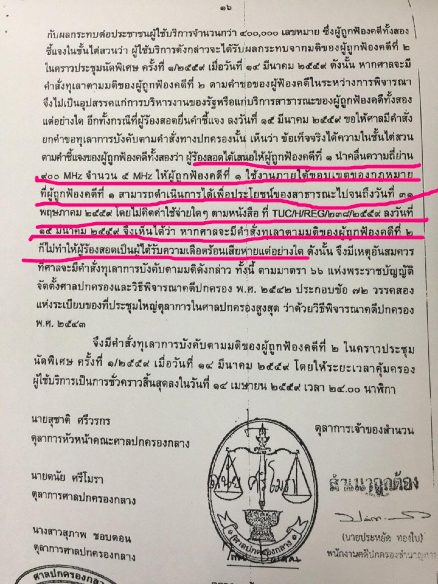 เรื่องตลกคือ ศาลเห็นว่า TRUE เสนอให้ AIS ใช้คลื่นได้ฟรีๆ TRUE จึงไม่เสียหายใดๆ เลยให้ AIS ใช้คลื่นต่อได้ LOL