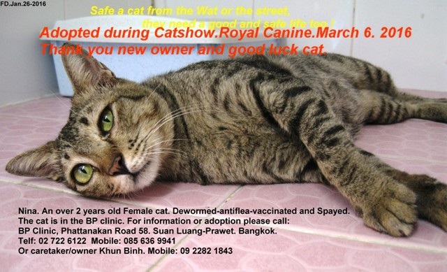 Forgot to inform you about this cat on the attached picture, that she was adopted after a long stay in the BP Clinic.