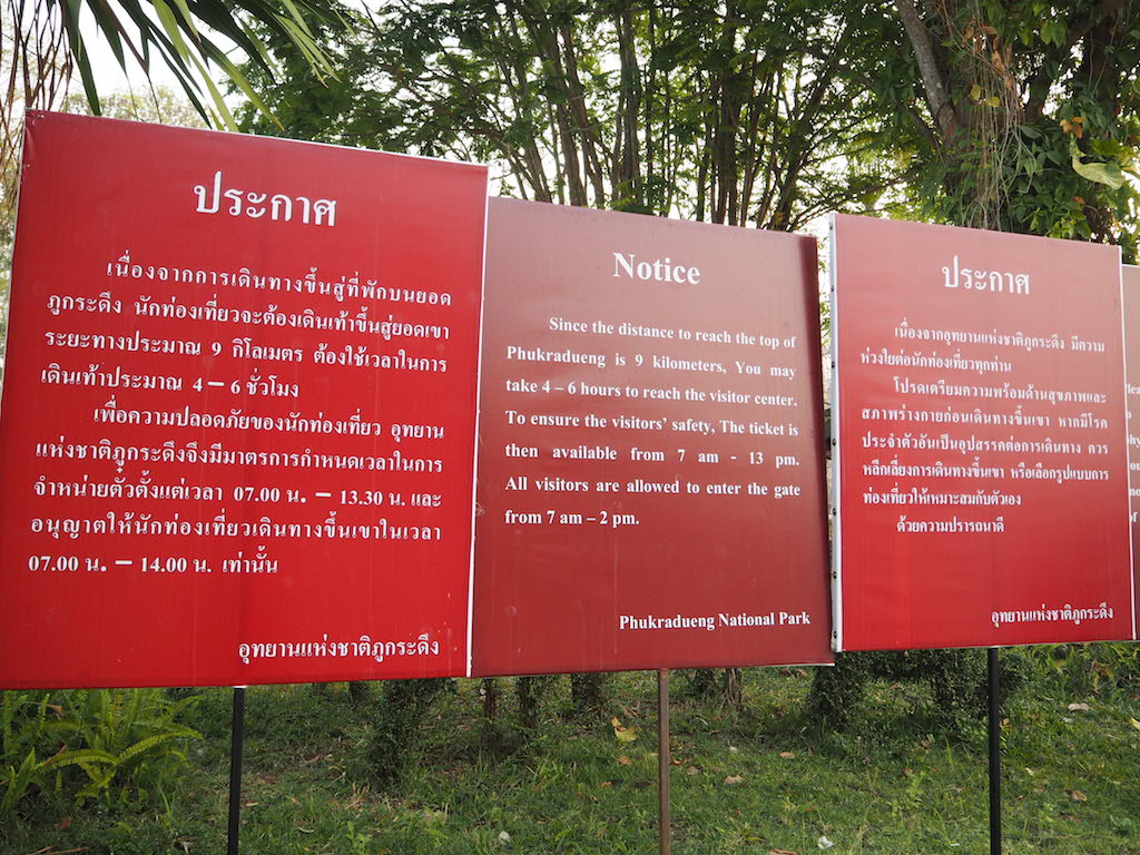 เขามีป้ายก็ดูกันบ้าง ขึ้นภูได้ 7โมงเช้า ถึง บ่าย2 นะ รีบๆขึ้นแต่เช้านี่ดีแล้ว ยังไม่ค่อยร้อน