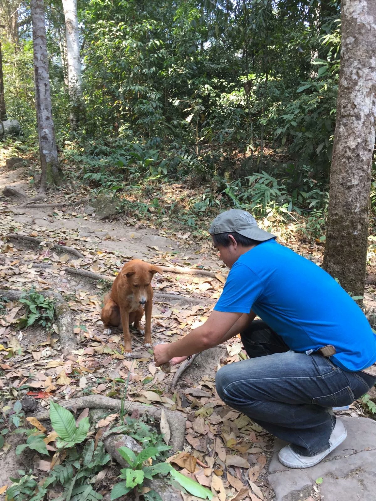 เจอน้องหมาตัวผอม คุณแฟนที่น่ารักก็แบ่งหมูทอดของเราให้มันกินค่ะ ดีนะตอนนั้นเราไม่หิว ไม่งั้นแย่งหมากินแน่เลย 555