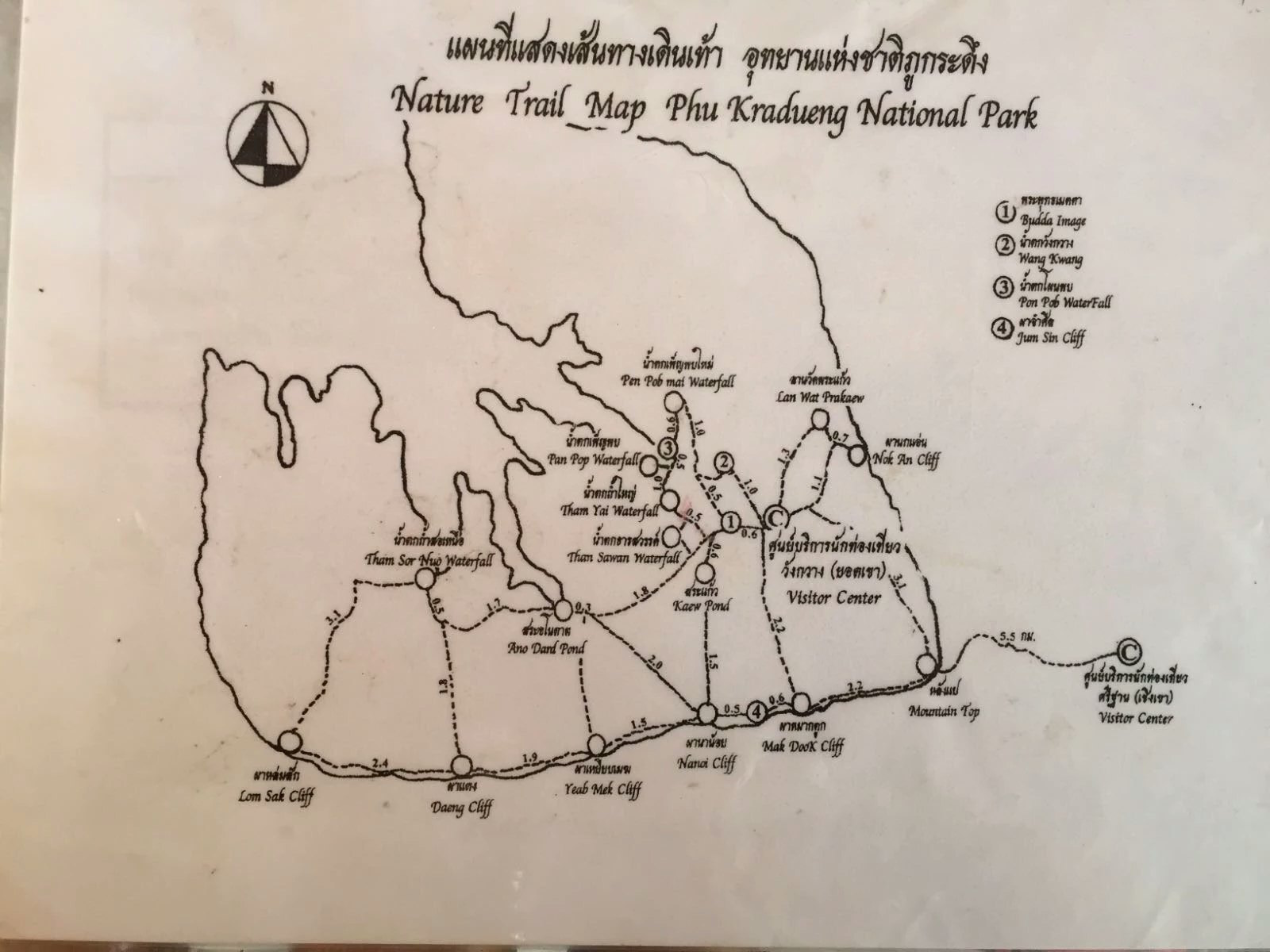 แผนที่ข้างบนภู ทางเดินและระยะทาง