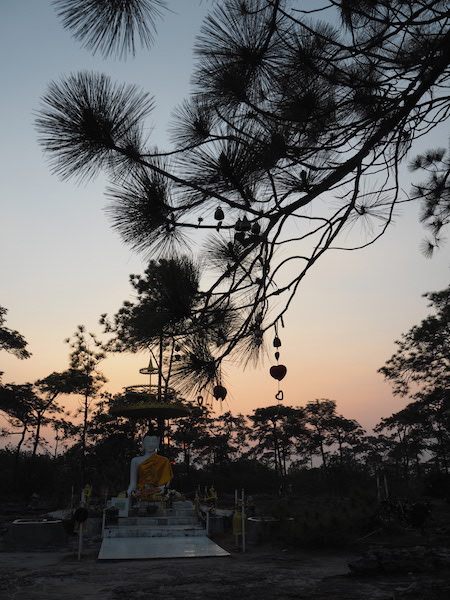 มันจะมีกิจกรรมที่น่าไปคือ ดูพระอาทิตย์ตกที่ผาหมากดูก ซึ่งเดินไป 2 กิโลได้ แต่จากที่คุยกับป้าที่ร้านข้าว เขาแนะนำให้ไปดูที่ลานพระพุทธเมตตาดีกว่า เพราะพระอาทิตย์ช่วงหน้าร้อนค่อนมาด้านนี้แล้ว ดีเลย เดินน้อย แค่ 700 เมตร ก็สวยไปอีกแบบ
