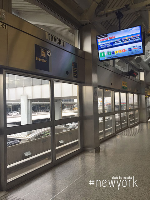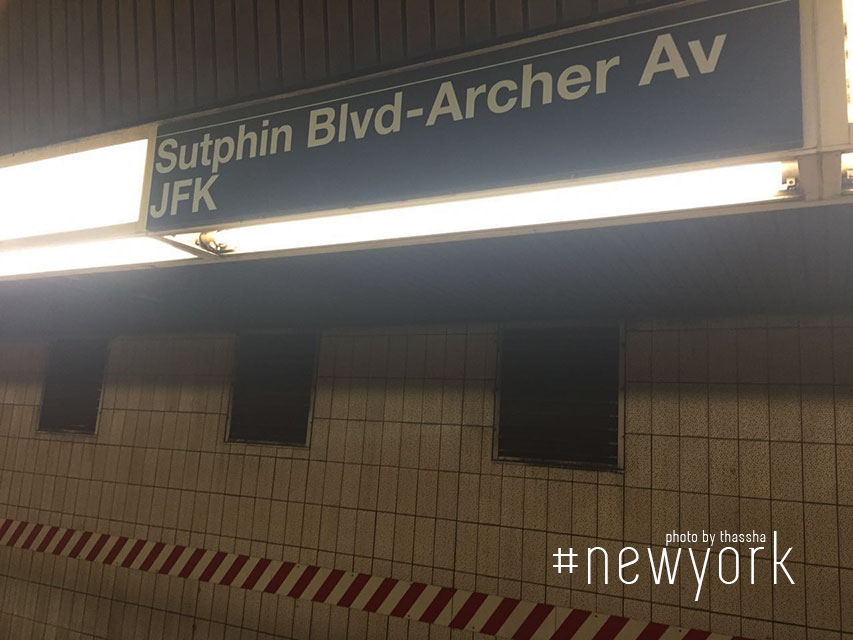 จากสนามบิน JFK เข้าเมืองใช้บริการ Air Train นั่งสายสีแดงไป Jamaica Station (Sutphin Blvd) ค่าเสียหาย 5$+ค่าบัตรอีก 1$ จ่ายตอนออกจากสถานี บัตร Air Train ให้เก็บไว้ใช้ตอนขากลับ ได้ไม่ต้องเสียค่าบัตรใหม่