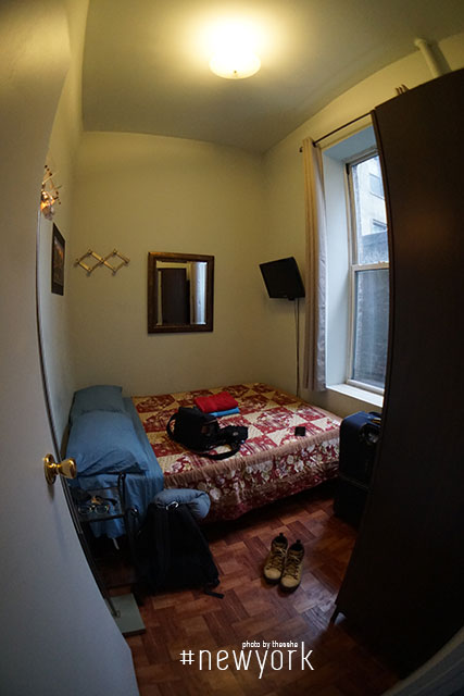 ที่พัก : เราพักใน Manhattan ค่ะ เนื่องจากเวลามีน้อย ก็เลยอยากอยู่ใกล้ๆแถบนี้ ได้ไปไหนมาไหนสะดวก ตอนแรกก็ดู Hostel แถวเซนทรัลปาร์คไว้ กะห้องดอร์มของ The OUT NYC แต่เสิร์ชไปเรื่อยๆดันเจอใน AirBnB เป็นห้องพักแถบ Hell’s Kitchen (ใกล้ๆกับ Port Authority Bus Terminal) คำนวนราคาแล้วตัดสินใจเลือกที่นี่เพราะว่าถูกกว่าแล้วก็เดินทางสะดวกค่ะ ราคาต่อคืน 59$ แต่ต้องพัก 4 คืนขึ้นไปนะคะ เจ้าของห้องชื่อ Luiz อพาร์ทเม้นของเค้ามีทั้งหมด 2 ห้องนอน เราเลือกห้องเล็กเพราะราคาถูกกว่า ในอพาร์ทเม้นมีไมโครเวฟให้ใช้ มีเครื่องทำกาแฟ (และกาแฟฟรี) มีไวไฟ (เร็วมากกก) มีทีวี ตู้เย็น มีห้องน้ำที่เป็นอ่างอาบน้ำ แล้วก็อ่างล้างหน้าแปรงฟัน ส่วนห้องส้วมจะอยู่นอกห้องค่ะ (แปลกดีเนอะ) ต้องเดินออกไปนอกห้องตรงทางขึ้นบันไดของตึกเพื่อไปเข้า แต่ว่าไม่ใช่ห้องน้ำรวมนะคะ เป็นห้องน้ำสำหรับอพาร์ทเม้นห้องนี้อย่างเดียวเลย มีกุญแจล็อคให้ เข้าเสร็จก็ล็อค ส่วนตัวเราไม่ค่อยซีเรียสเรื่องที่พักเท่าไหร่ ขอแค่ราคาสมเหตุสมผล ปลอดภัย สะอาด เดินกลับดึกๆจากไทม์แสควร์ได้ ไม่น่ากลัวก็โอเคค่ะ ^__^ ข้อเสียมีแค่ห้องเล็กที่เราจองไปไม่ค่อยอุ่นเท่าไหร่ ช่วงที่เราไปมันหน๊าวววหนาว พี่ Luiz เค้าก็จัดผ้าห่มมาให้เต็มแมกซ์ 3 ผืนนะ แต่ก็ไม่ค่อยช่วยสักเท่าไหร่ 555 ไม่น่างกเลย ถ้าเลือกห้องใหญ่ชีวิตน่าจะดีกว่านี้ (ห้องใหญ่แพงกว่าคืนละ 10$ เอง) ตอนที่เราไปมีหนุ่มออสเตรเลียเป็นรูมเมท ฮีมาทำงาน Toy’s Fair ได้คุยกันวันสองวัน เพราะต่างคนก็ไม่ค่อยอยู่ห้อง แต่ก็ถือว่าเป็นโชคดีที่ได้เพื่อนร่วมห้องที่ดี