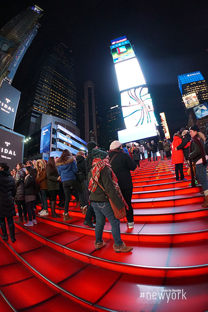 บันไดแดง สัญลักษณ์ไทม์แสควร์ บู๊ท TKTS อยู่ตรงข้างๆบันไดแดงนี้แหละ