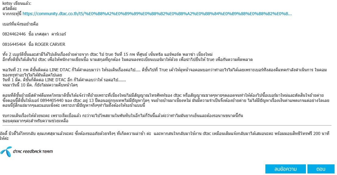 Dtac>True รอย้ายค่ายเกิน 1 เดือนแล้วแถมโยนกันไปมา