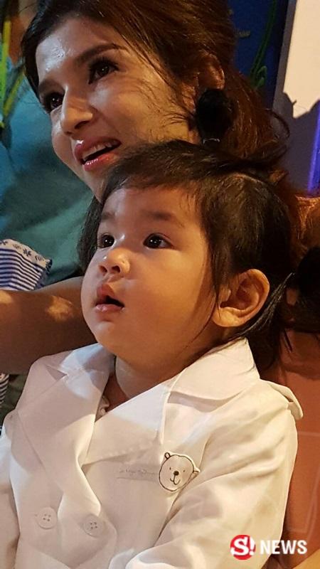 "ที่คุณอาคุยตอนนี้ไม่แน่ใจว่ากี่ตัวนะคะ แต่มีแน่นอน รอชมผลงานน้องแล้วกัน(ยิ้ม) มีบ้างแล้วที่รับค่ะ ก็เพิ่งจะเริ่มถ่ายได้เมื่อไม่นานมานี้ น้องก็โอเคค่ะ ทีมงานน่ารักมาก เล่นกับน้อง หลอกล่อน้อง อย่างที่เคยบอกไม่ได้เหมือนการทำงานเลย เพราะได้เล่นทั้งวันเลย"